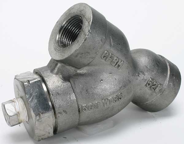 Description Y Strainer, Pipe Size 1 in, Maximum Pressure at 100 deg F 1,440 psi, Length 4 5/8 in, Height 5 1/4 in, Blow Off Port 3/8 in, Screen Material 304 Stainless Steel, Perforated Screen Size 0.062 in, Housing Material Stainless Steel, Class 600, For Use With Steam, Water, Includes Screen Yes, Maximum Pressure 1,440 psi @ 100 Degrees F, 845 psi @ 750 Degrees F, Maximum Temperature 100 Degrees F, Port 1 Connection Size 1 in, Port 1 Connection Type NPT, Port 1 Gender Female, Port 2 Connection Size 1 in