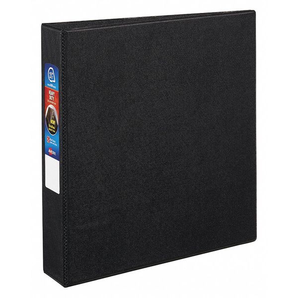 Description Color Family - Binders Black, 3-Ring Binder, Ring Type - Binders D-Ring, Ring Size - Binders 1 1/2 in, Cover Type - Binders Plain, Sheet Size - Binders 8-1/2 in x 11 in, Durability - Binders Standard, Sheet Capacity - Binders 375, Features - Binders Finger Print Resistant, Label Holder, Nonstick, Basic Material - Binders Vinyl, Specific Material Suede Finish Vinyl, Color Black, Number of Rings 3, Item 3-Ring Binder