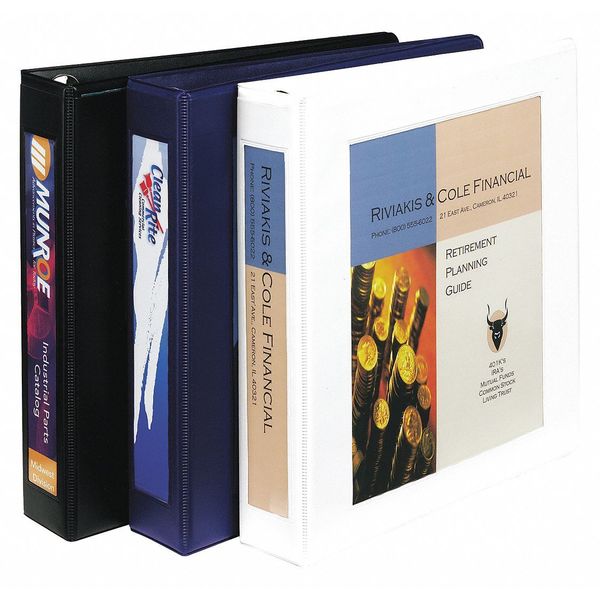 Description Color Family - Binders White, 3-Ring Binder, Ring Type - Binders D-Ring, Ring Size - Binders 1 1/2 in, Cover Type - Binders Clear Sleeve, Sheet Size - Binders 8-1/2 in x 11 in, Durability - Binders Standard, Sheet Capacity - Binders 375, Features - Binders Finger Print Resistant, Nonstick, Rings Mounted on Back Cover, Basic Material - Binders Vinyl, Specific Material Vinyl, Color White, Number of Rings 3, Item 3-Ring Binder