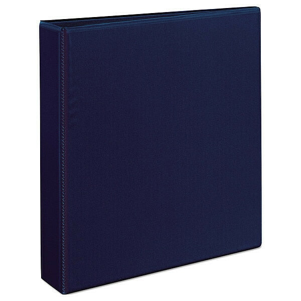 Description Color Family - Binders Blue, 3-Ring Binder, Ring Type - Binders D-Ring, Ring Size - Binders 1 1/2 in, Cover Type - Binders Clear Sleeve, Sheet Size - Binders 8-1/2 in x 11 in, Durability - Binders Heavy Duty, Sheet Capacity - Binders 400, Features - Binders Rings Mounted on Back Cover, Single Touch Trigger to Open All Rings, Basic Material - Binders Vinyl, Specific Material Vinyl, Color Navy Blue, Number of Rings 3, Includes Pockets, Item 3-Ring Binder