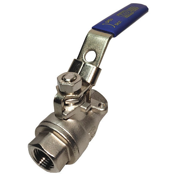 $110.13 / eachWeb price1-1/2" FNPT Stainless Steel Ball Valve InlineSKU G0942365CategoriesDescription Ball Valve, Body Material 316 Stainless Steel, Body Style Inline, 2-Piece, Pipe Size 1 1/2 in, Connection Type FNPT x FNPT, Full Port, Max. Pressure 1,000 psi CWP, Temp. Range -25 Degrees to 450 Degrees F, Ball Material 316 Stainless Steel, Seat Material PTFE, Stem Type Blowout Proof, Handle Type Locking Lever, Handle Material Stainless Steel with Vinyl Grip, Stem Material 316 Stainless SteelgraingerSKU: 1WMY6, mscSKU: 20210100, zoro_no: G0942365, mongo_id: 65bbe97422d7a989a995864b