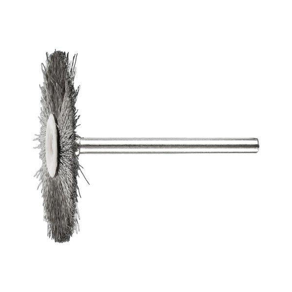 1-1/2" Miniature Mtd. Wheel Brush - .005 CS Wire, 1/8" Stem