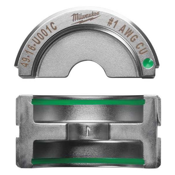 $161.25 / eachWeb price#1 Copper U Style DieSKU G3112545CategoriesDescription Upper and Lower Crimping Die, Compatible Connector Type U Style Dies, Compatible Cable Type Electrical Wire and Cable Crimping, Number of Crimping Sizes 2, Connector Color Code Green, Number of Pieces 1, Maximum Crimping Force 6 ton, Compatible with Brand M18(TM) FORCE LOGIC(TM), Compatible with Manufacturer Model Number 2679-20, 49-16-U000, Compatible with Series U Style, Application Electrical Wire and Cable Crimping, Crimping Capacity 1 AWG, Includes #1 Copper U Style Die (49-16-U001C)graingerSKU: 45FD93, mscSKU: , zoro_no: G3112545, mongo_id: 65bbe8b722d7a989a9910153