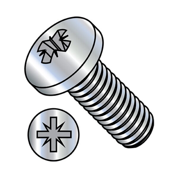 #4-40 x 3/8 in Pozidriv Pan Machine Screw, Zinc Plated Steel, 10000 PK