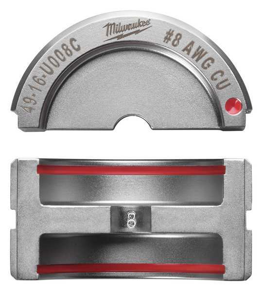 SKU G3112588CategoriesDescription Upper and Lower Crimping Die, Compatible Connector Type U Style Dies, Compatible Cable Type Electrical Wire and Cable Crimping, Number of Crimping Sizes 2, Connector Color Code Red, Number of Pieces 1, Maximum Crimping Force 6 ton, Compatible with Brand M18(TM) FORCE LOGIC(TM), Compatible with Manufacturer Model Number 2679-20, 49-16-U000, Compatible with Series U Style, Application Electrical Wire and Cable Crimping, Crimping Capacity 8 AWG, Includes #8 Copper U Style Die (49-16-U008C)graingerSKU: 45FD89, mscSKU: , zoro_no: G3112588, mongo_id: 65bbe5b23aaddbd5a9fde970