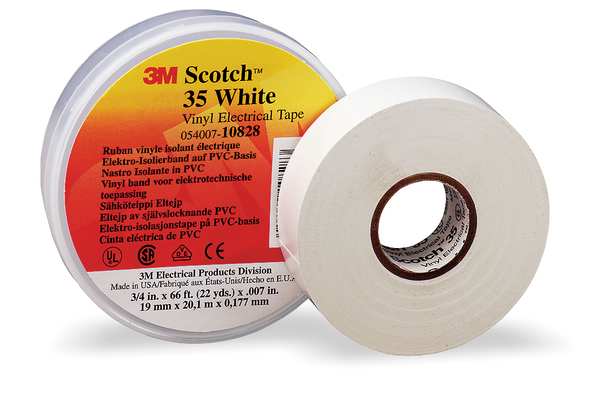 Vinyl Electrical Tape, 35, Scotch, 3/4 in W x 66 ft L, 7 mil thick, White, 1 Pack