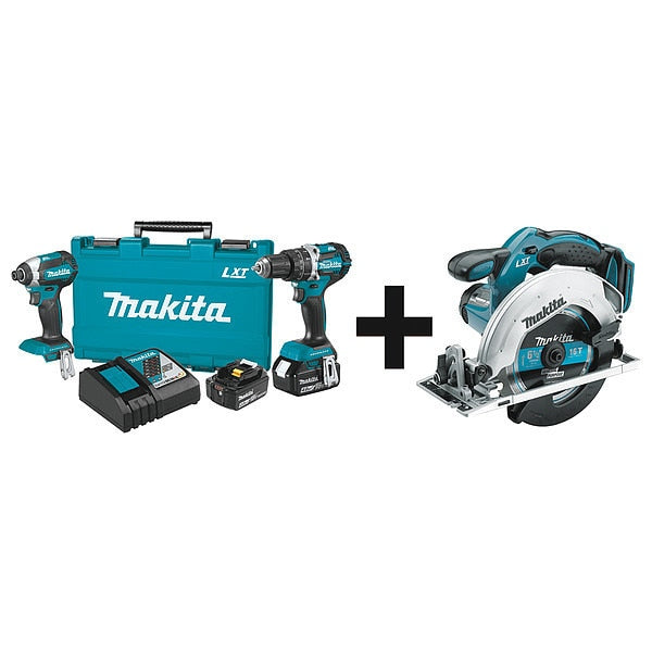 SKU G9222873Categories Electric and Cordless ToolsDescription Cordless Combination Kit, Cordless Tools Included Circular Saw, Hammer Drill, Impact Driver, Voltage 18 V, Power Source Cordless, Number of Tools 3, Battery Capacity (2) 4.0 Ah, Includes (2) Batteries, Charger, Contractor Bag, Tool Brand Makita, Series 18V LXT, Battery Included (2) Mfr. No. BL1840B, Number of Batteries Included 2, Battery Model No. (2) Mfr. No. BL1840B, Battery Series 18V LXT, Charger (1) Mfr. No. DC18RC, Charger Included YesgraingerSKU: 327DX8, mscSKU: , zoro_no: G9222873, mongo_id: 65bbe98822d7a989a995f036