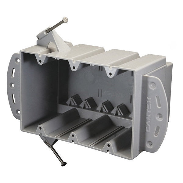 SKU G0252874Categories Electric and Cordless ToolsDescription Electrical Box, Box Type Switch, Number of Gangs 3, Bracket Type Nails, Capacity 74 cu in, Material PVC, Number of 1/2 In. Back Knockouts 12, Number of 1/2 In. Side Knockouts 0, Clamp Type -, - Hub Location, Rated -, Nominal Depth 3 in, Nominal Length 6 in, Nominal Width 4 in, Color Gray, Standards ULgraingerSKU: 4FZA9, mscSKU: , zoro_no: G0252874, mongo_id: 65bbe97422d7a989a9958a31