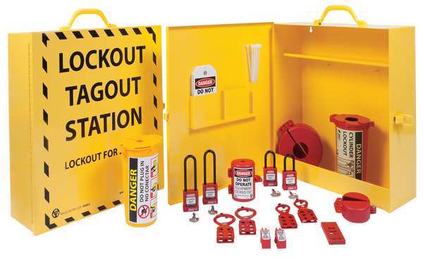 Lockout Station, Electrical, 18 In HSKU G4936434Categories Electric and Cordless ToolsDescription Lockout Station, Cable Lockouts Included Not Applicable, Cover Type Closed, Electrical Lockouts Included (1) Wall Switch Lockout Device, (2) Circuit Breaker Lockout Devices, (3) Plug Lockout Devices, Filled Yes, Number of Hasps Included 4, Number of Lockouts Included 37, Number of Padlocks Included 4, Number of Tags Included 10, Visibility Inside None, For Lockout Type Electrical, Valve, Language English, Background Color Yellow$353.74 / eachWeb price -