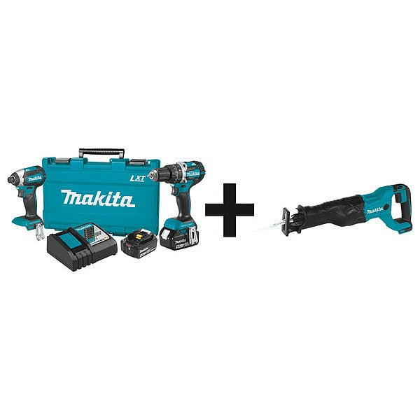 Cordless Combination Kit, 3 Tools, 18V DCSKU G9223129Categories Electric and Cordless ToolsDescription Cordless Combination Kit, Cordless Tools Included Hammer Drill, Impact Driver, Reciprocating Saw, Voltage 18 V, Power Source Cordless, Number of Tools 3, Battery Capacity (2) 4.0 Ah, Includes (2) Batteries, Charger, Contractor Bag, Tool Brand Makita, Series 18V LXT, Battery Included (2) 33RT43, Mfr. No. BL1840B, Number of Batteries Included 2, Battery Model No. (2) Mfr. No. BL1840B, Battery Series 18V LXT, Charger (1) Mfr. No. DC18RC, Charger Included YesgraingerSKU: 327DZ5, mscSKU: , zoro_no: G9223129, mongo_id: 65bbe96322d7a989a9950a0f