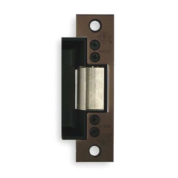 SKU G2559261Categories Electric and Cordless ToolsDescription Electric Strike, For Use With Cylindrical Locksets with Deadlatches, Performance Standard-Duty, Failure Mode Fail Safe or Fail Secure, Input Voltage 12/24 V AC/DC, Door Frame Type Aluminum, Faceplate Width 1 1/4 in, Faceplate Height 4 7/8 in, Faceplate Depth 1/8 in, Pull Force 1,500 lb, Grade 1, Fire Rated Not, Finish Dark Bronze, Material Zinc-Aluminum Alloy, Bolt Throw 1/2 in, Features Narrow Style Fail Secure, Standards ANSI/BHMA EO937, Includes Mounting Hardware$212.49 / eachWeb price
