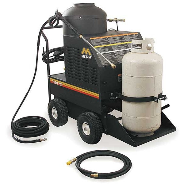 Light Duty 1500 psi 1.8 gpm Hot Water Electric Pressure WasherSKU G2169021Categories Electric and Cordless Tools , Lighting ToolsDescription Pressure Washer, Light Duty (0 to 1999 psi), Operating Pressure 1,500 psi, Electric, Pressure Washer Water Type Hot, Pressure Washer Style Cart, 1.8 gpm, Detergent Injection System Yes, 2 hp HP, Volts/Phase 120/1, Pump Drive Belt, Pump Type Triplex Piston, Piston Material Solid Ceramic, Usable Hours per Week 20+, Hose Dimensions 3/8 in x 50 ft, Burner Fuel Liquid Propane, Water Output Temp. 190 Degrees to 200 Degrees F, Net Weight 363 lbgraingerSKU: 3WB91, mscSKU: , zoro_no: G2169021, mongo_id: 65bbe8569a749db82278775f