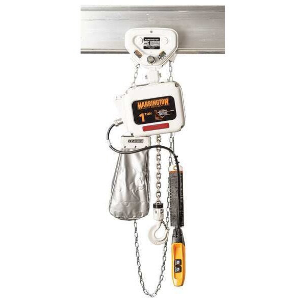 Electric Chain Hoist, 4,000 lb, 20 ft, Motorized Trolley, WhiteSKU G2208888Categories Electric and Cordless ToolsDescription Electric Chain Hoist, Duty Classification H4, Mount Type Motorized Trolley, Maximum Lifting Capacity 4,000 lb, Number of Speeds 1, Programmable Non-Programmable, Fixed Lift Speed 14 fpm, Minimum Lift Speed Not Applicable, Maximum Lift Speed Not Applicable, Trolley Speed 40 fpm, Maximum Lifting Length 20 ft, Current at Minimum Voltage 8.6 A, Current at Maximum Voltage 1.7 A, Motor Horsepower 2 3/8 hp, Operating Voltage 208-230/460V AC, Headroom 22 13/32 in, For Minimum Beam Height 4 29/32 ingraingerSKU: 33RW12, mscSKU: , zoro_no: G2208888, mongo_id: 65bbe8479a749db822783164