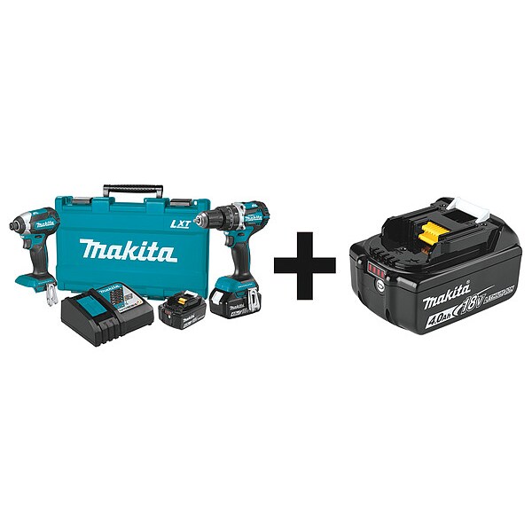 SKU G9222663Categories Electric and Cordless ToolsDescription Cordless Combination Kit, Cordless Tools Included Hammer Drill, Impact Driver, Voltage 18 V, Power Source Cordless, Number of Tools 2, Battery Capacity (3) 4.0 Ah, Includes (3) Batteries, Charger, Contractor Bag, Tool Brand Makita, Series 18V LXT, Battery Included (3) 33RT43, Mfr. No. BL1840B, Number of Batteries Included 3, Battery Model No. (3) Mfr. No. BL1840B, Battery Series 18V LXT, Charger (1) Mfr. No. DC18RC, Charger Included YesgraingerSKU: 327EU9, mscSKU: , zoro_no: G9222663, mongo_id: 65bbe66f3aaddbd5a902da23