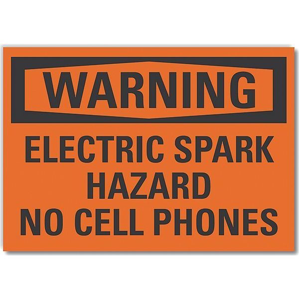 Decal, Warning Electric Spark, 10 x 7", Sign Background Color: OrangeSKU G9479736Categories Electric and Cordless Tools , SafetyDescription Danger Sign, Vertical Rectangle, Number of Printed Sides 1, English, Sign Format Traditional OSHA, Sign Legend Electric Spark Hazard No Cell Phones, Sign Legend Background Color Orange, Sign Legend Style TextgraingerSKU: , mscSKU: , zoro_no: G9479736, mongo_id: 65bbe60f3aaddbd5a900436e