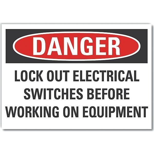 Decal, Danger Lock Out Electrical, 14x10", Height: 10 inSKU G9463776Categories Electric and Cordless ToolsDescription Lockout Tagout Danger Label, Horizontal Rectangle, Number of Printed Sides 1, English, Sign Format Traditional OSHA, Sign Legend Lock Out Electrical Switches Before Working On Equipment, Sign Legend Background Color White, Sign Legend Style TextgraingerSKU: , mscSKU: , zoro_no: G9463776, mongo_id: 65bbe60f3aaddbd5a900425b