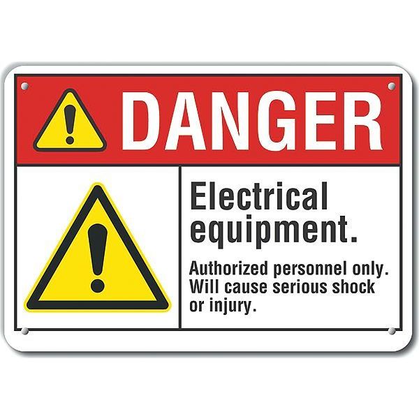 Reflective Electrical Equipment Danger Sign, 10 in Height, 14 in Width, Aluminum, EnglishSKU G8743397Categories Electric and Cordless Tools , SafetyDescription Reflective Electrical Equipment Danger Sign, Horizontal Rectangle, Number of Printed Sides 1, English, Sign Format ANSI/OSHA Format, Sign Legend Electrical Equipment Authorized Personnel Only. Will Cause Serious Shock Or Injury., Sign Legend Background Color White, Sign Legend Style Symbol and TextgraingerSKU: , mscSKU: , zoro_no: G8743397, mongo_id: 65bbe60f3aaddbd5a90042a3