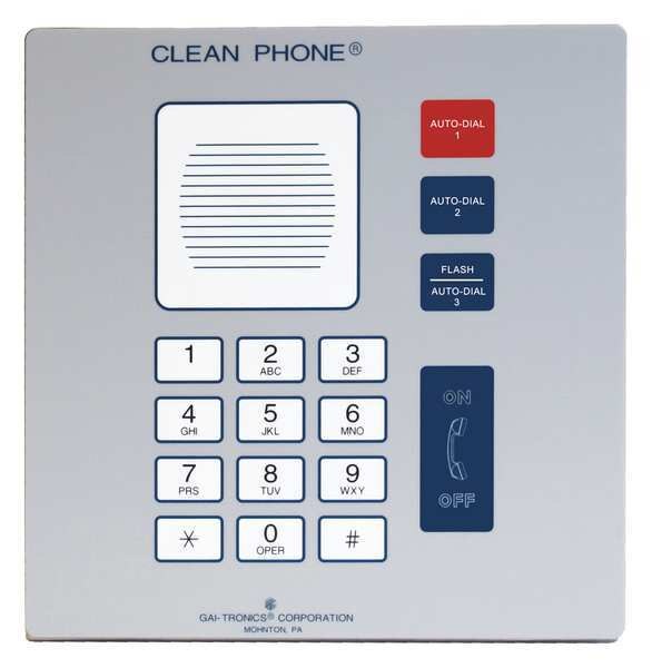 Cleanroom Telephone, Cordless, Single LineSKU G0125341Categories Electric and Cordless ToolsDescription Cleanroom Telephone, Call Waiting No, Overall Depth 2 in, Speakerphone Yes, Overall Height 12 in, Voicemail No, Overall Width 12 in, Volume Control No, Indoor/Outdoor Usage Indoor, Standards CSA Certified, FCC, FCC CRF 47 Part 15, UL Listed, Number of Handsets 0, Number of Lines 1, Cord Length Not Applicable, Mounting Location Wall, Caller ID No, Enclosure Material Stainless Steel, Enclosure Rating Not Applicable, Includes Enclosure Yes, Facility Type Healthcare, Includes Mounting Hardware NograingerSKU: null, mscSKU: null, zoro_no: G0125341, mongo_id: 65bbe5d53aaddbd5a9fed004