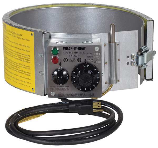SKU G5714177Categories Electric and Cordless ToolsDescription Drum Heater, Current Rating 16 A, Environment Indoor, For Container Capacity 30 gal, For Container Material Type Metal, For Container Type Drums, Thermostat Temperature -Maximum 250 Degrees F, Thermostat Temperature -Minimum 60 Degrees F, Operating Voltage 115V AC, Watt Density 9.6 W/sq in, Watts 1,920 W, Closure Method Spring Loaded Clamp, Drum Diameter - Maximum 18 1/2 in, Electrical Connection Type 5-20P Plug, Features One Year Warranty, Thermostat Control is Numbered 1-7graingerSKU: 21YL27, mscSKU: , zoro_no: G5714177, mongo_id: 65bbe87822d7a989a98f9cac