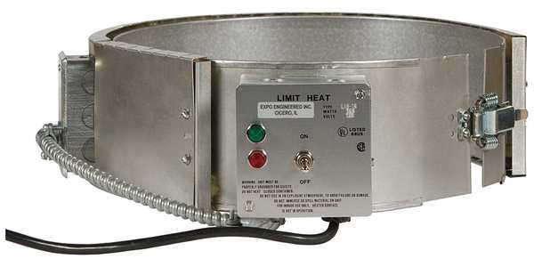 SKU G5809325Categories Electric and Cordless ToolsDescription Drum Heater, Current Rating 14.6 A, Environment Indoor, For Container Capacity 30 gal, For Container Material Type Metal, For Container Type Drums, Thermostat Temperature -Maximum 500 Degrees F, Thermostat Temperature -Minimum 10 Degrees F, Operating Voltage 115V AC, Watt Density 8.75 W/sq in, Watts 1,750 W, Closure Method Spring Loaded Clamp, Drum Diameter - Maximum 18 1/2 in, Electrical Connection Type 5-20P PluggraingerSKU: 21YL31, mscSKU: , zoro_no: G5809325, mongo_id: 65bbe6b23aaddbd5a904974e