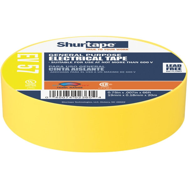 Electrical Tape, Yellow, 3/4"X66Ft