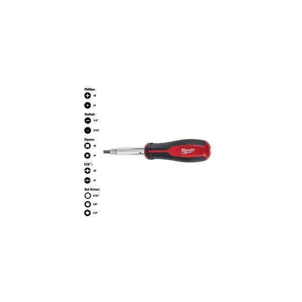 11in1 Screwdriver ECXSKU G1565763Categories Hand ToolsDescription Multi-Bit Screwdriver, Tip Size #1, #2, 1/4 in, 3/16 in, 3/8 in, Tip Style ECX, Phillips, Slotted, Square, Quick Change, Ergonomic, Bit Material Alloy Steel, Bit Storage In Handle, Double End, Magnetized Tip No, Shank Length 3 1/2 in, Shank Material Alloy Steel, Drive Size 3/16 in, 1/4 in, 5/16 in, 3/8 in, ESD Safe NograingerSKU: null, mscSKU: null, zoro_no: G1565763, mongo_id: 65bbe6f33aaddbd5a90656aa