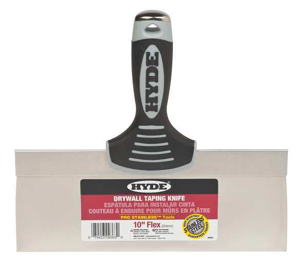 Taping Knife, Flexible, 10", SSSKU G4616823Categories Hand ToolsDescription Drywall and Putty Knives, Nonsparking No, Flexible, Blade Type Folded Backing, Tapered, Blade Width 10 in, Blade Material Stainless Steel, Handle Material Plastic, Taping Knife, Blade Length 3 1/2 in, Handle Length 6 in, Handle Design Hammer Head, Soft Grip, No. of Edges 1, Color Black/Cream, Overall Length 10 ingraingerSKU: null, mscSKU: null, zoro_no: G4616823, mongo_id: 65bbe6f33aaddbd5a906550d
