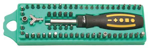 62 Piece Screwdriver Bit Set, 1/4"SKU G4442943Categories Hand ToolsDescription Multi-Bit Screwdriver, Tip Size #0, #1, #2, 1/8 in, 3/16 in, C1, C2, C3, M5, M6, M8, PZ0, PZ1, PZ2, S0, S1, S2, S3, T10, T15, T20, T25, T27, T30, T40, T5, T6, T7, T8, Tip Style Phillips, Pozidriv, Slotted, Square, Tamper Resistant Hex, Tamper Resistant Torx, Magnetic, Ergonomic, Bit Material Alloy Steel, Bit Storage Separate Case, Single End, Magnetized Tip Yes, Shank Length 3 in, Shank Material Alloy Steel, Drive Size 1/4 in, ESD Safe NograingerSKU: null, mscSKU: null, zoro_no: G4442943, mongo_id: 65bbe6273aaddbd5a900f722