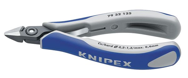 5 in High Leverage Diagonal Cutting Plier Standard Cut UninsulatedSKU G7235216Categories Hand ToolsDescription High Leverage Diagonal Cutting Plier, Plier Type Precision Diagonal Cutting Pliers, Cut Profile Standard, ESD-Safe Yes, Insulated No, Non-Sparking No, Head Offset Angle 0 Degrees , Overall Length 5 in, Jaw Length 1 in, Jaw Width 1/2 in, Jaw Opening Type Spring Return, Maximum Wire Cutting Diameter 1.5 mm, Voltage Rating Not Rated, Tether Ready Yes, Cutter Length 1/2 in, Cutter Location SidegraingerSKU: 10U027, mscSKU: , zoro_no: G7235216, mongo_id: 65bbe5ca3aaddbd5a9fe7ec5