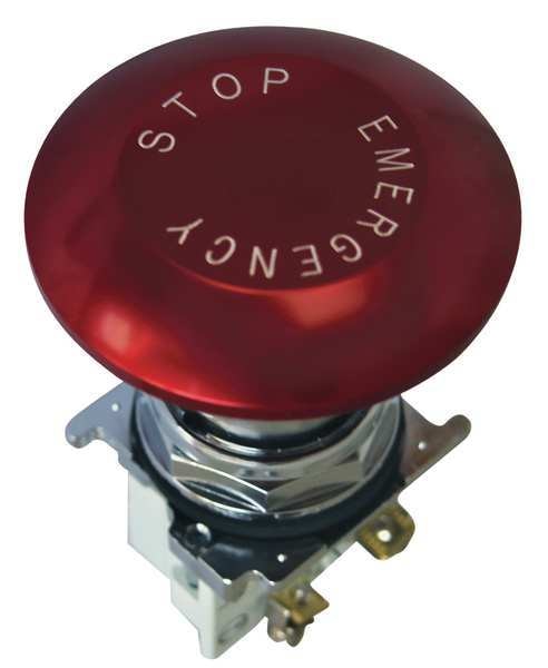 Cutler-Hammer Emergency Stop Push Button, Red, Head Material: AluminumSKU G5226191Categories Hand ToolsDescription Emergency Stop Push Button, 30 mm, Maintained Push / Maintained Pull Action, 65mm Mushroom Head Type of Operator, Head Material Aluminum, Contact Form 1NO/1NC, Bezel Chrome Plated Zinc Die Cast, Color Red, Contact Rating 10A @ 600V AC, Number of Operators 1, NEMA Rating 12, 13, 3, 3R, 4, 4X, IP Rating 65, Legend Emergency Stop, Standards CE, CSA, UL, Terminal Connection Exposed Screw, Features Diaphragm Seals, Reliability Nibs, Material MetalgraingerSKU: 39P795, mscSKU: , zoro_no: G5226191, mongo_id: 65bbe5af3aaddbd5a9fdc0a1