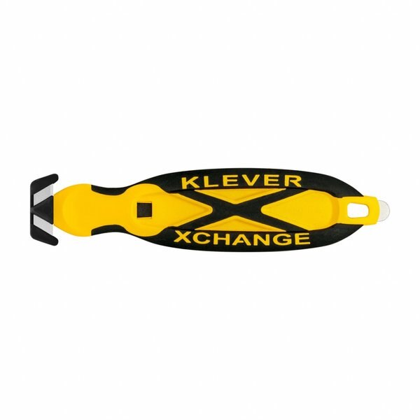 Safety Cutter, 6 1/2 in Length, Oval Handle, Rubberized Grip, Steel Blade, Yellow/Black