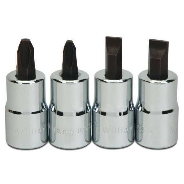 Williams Screwdriver Bit Socket Set, 1/2" D, 4pcs.