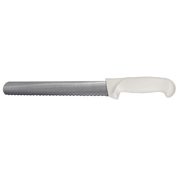 SKU G1892040Categories Hand ToolsDescription Slicer Knife, Serrated, Length 12 In., Blade Type Serrated, Blade Material High Carbon Steel, Polypropylene Handle, Handle Color White, NSF Certified YesgraingerSKU: 45GJ28, mscSKU: , zoro_no: G1892040, mongo_id: 65bbe7fc9a749db82276b3d7