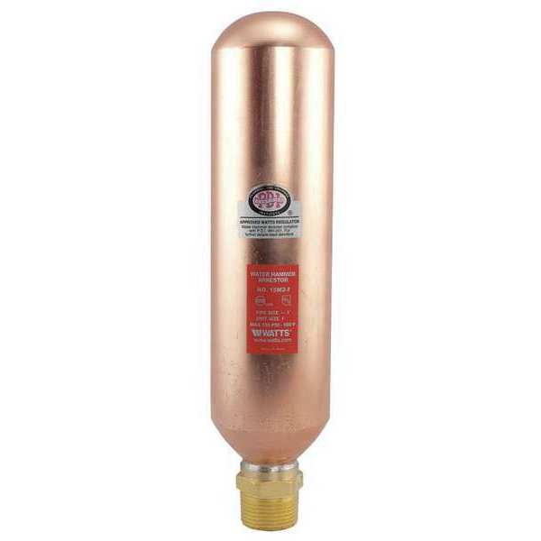 SKU G4570352Categories Hand ToolsDescription Water Hammer Arrestor, Body Material Copper with Low-Lead Brass Adapter, Connection Type MNPT, Pipe Size 1 in, Factory Set Pressure 60 psi, Overall Height 11 5/32 in, Diameter 2 5/8 in, Max. Pressure 150 psi, Temp. Range 33 Degrees to 180 Degrees F, Standards ASSE1010,ANSI A112.26.1M, PDI WH201graingerSKU: 26X570, mscSKU: , zoro_no: G4570352, mongo_id: 65bbe82222d7a989a98dc265
