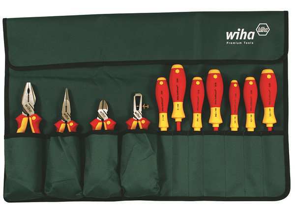 SKU G4557542Categories Hand ToolsDescription Insulated Tool Kit, Tool Storage Type Tool Roll, Measurement Type SAE, Drive Size Sockets Not Included, Number of Pieces 11, Pliers Included (1) Diagonal-Cutting Pliers, (1) Long-Nose Pliers, (1) Lineman's Pliers, Screwdrivers, Keys, and Bits Included (2) Phillips Screwdrivers, (2) Square Screwdrivers, (3) Slotted Screwdrivers, Sockets, Drive Tools, and Accessories Included None, Wrenches Included None, Striking and Struck Tools Included None, Cutting Tools Included (1) Cable CuttergraingerSKU: , mscSKU: 33901000, zoro_no: G4557542, mongo_id: 65bbe7ee9a749db822764820