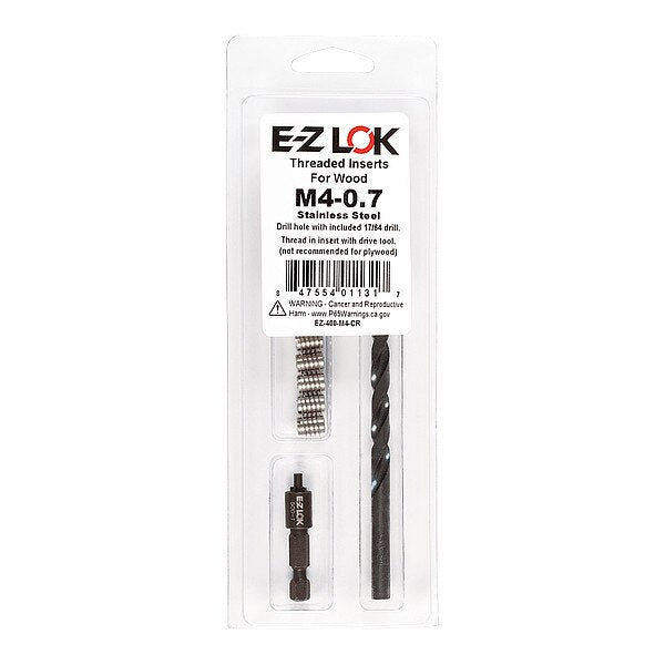 SKU G609228345Categories Hand ToolsDescription Knife Thread Insert, System of Measurement Metric, Insert Diameter 6.35 mm, Overall Length 9.525 mm, Internal Thread Size M4-0.70, Thread Direction Right Hand, Thread Type Coarse, Material Stainless Steel, Material Grade/Class 18-8, Finish Plain, Drive Type Slotted, Drill Bit Size 17/64 in, Compatible Material Wood, Minimum Material Thickness 10 9/64 mm, Maximum Hole Diameter 6.756 mm, Compatible with Manufacturer Model Number 500-1, Includes (10) Threaded Inserts, Drill, Drive Tool$29.54 / eachWeb priceThread Repair Kit, Knife Thread Inserts, Plain 18-8 Stainless Steel, 10 InsertsSKU G609228345Categories Hand ToolsDescription Knife Thread Insert, System of Measurement Metric, Insert Diameter 6.35 mm, Overall Length 9.525 mm, Internal Thread Size M4-0.70, Thread Direction Right Hand, Thread Type Coarse, Material Stainless Steel, Material Grade/Class 18-8, Finish Plain, Drive Type Slotted, Drill Bit Size 17/64 in, Compatible Material Wood, Minimum Material Thickness 10 9/64 mm, Maximum Hole Diameter 6.756 mm, Compatible with Manufacturer Model Number 500-1, Includes (10) Threaded Inserts, Drill, Drive Tool$29.54 / eachWeb price -
