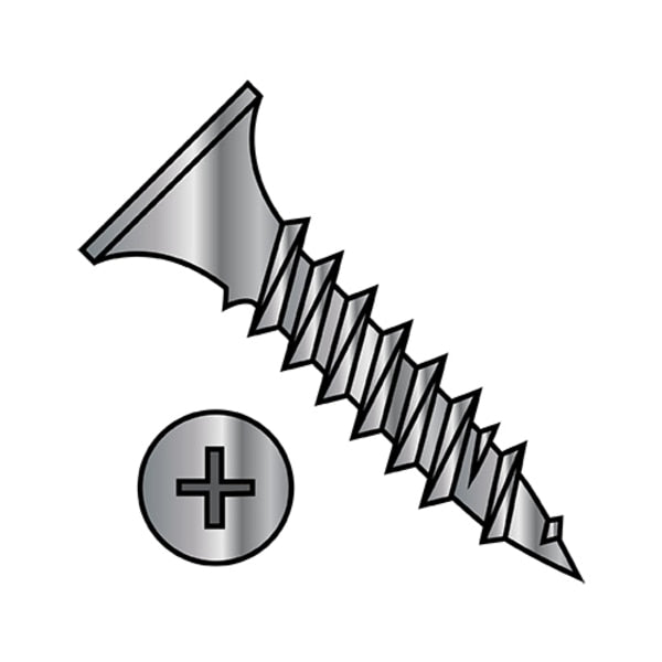 Drywall Screw, #10 x 1-1/4 in, Steel, Flat Head Phillips Drive, 2000 PK