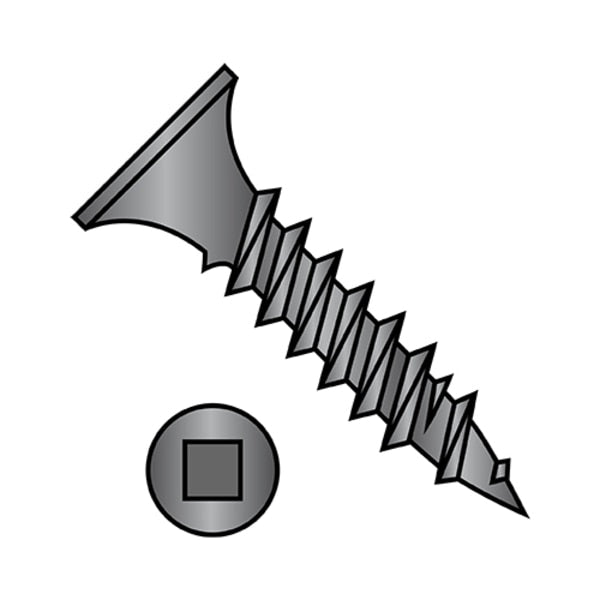 Drywall Screw, #8 x 1 in, Steel, Flat Head Square Drive, 2000 PK