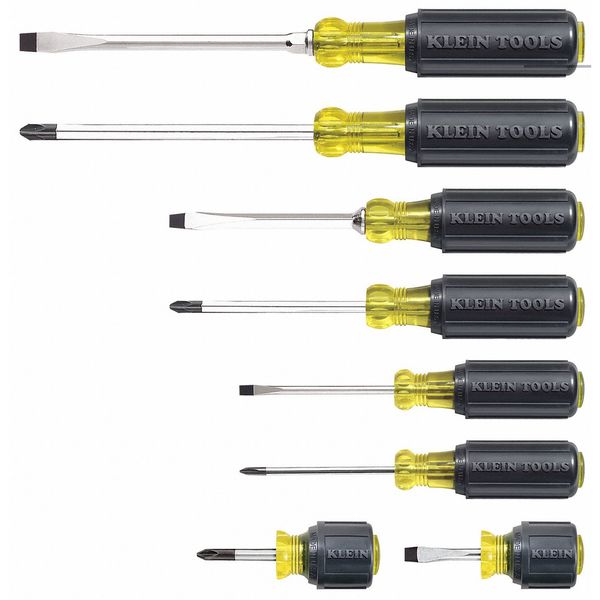 Screwdriver Set, General Purpose, Multi-Application, Ergonomic Grip, Black/Yellow, 8-PieceSKU G3621563Categories Hand ToolsDescription General Purpose Screwdriver Set, Tip Finish Chrome, 1/4 in, 3/16 in, 5/16 in, Phillips, Slotted, Ergonomic, Number of Pieces 8, No, ESD Safe No, Non-Sparking No, Measurement Type SAE, Includes Cabinet 5/16 in x 1-1/2 in , 1/4 in x 4 in , 5/16 in x 6 in , Cabinet 3/16 in x 3 in , Phillips #1 x 3 in , #2 x 1-1/2 in , #2 x 4 in , #3 x 6 in , Corrosion Resistant Yes, ANSI, ASME, Tether Ready No, Range of Shank Lengths 1 1/2 in to 6 ingraingerSKU: 2DGP6, mscSKU: 06515407, zoro_no: G3621563, mongo_id: 65bbea4a22d7a989a99a540a