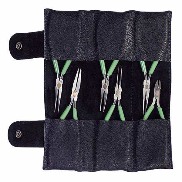 SKU G9643139Categories Hand ToolsDescription Plier Set, ESD-Safe Yes, Insulated No, Number of Pliers 6, Plier Types Diagonal, Long Nose, Pliers Included 4 1/2 in Transverse End Cutting Pliers, 4 in Diagonal Cutter, 5 in Fine Tip Needle Nose, 5 in Flat Nose, 5 in Long Nose, Jaw Opening Type Manual, Grip Style Standard Cushion, Container Type Pouch, Features Durable Pocket-Pouch, Heavy-Duty Snaps, Handle Color Blue, Handle Style Cushion GripgraingerSKU: 54XR90, mscSKU: 38586665, zoro_no: G9643139, mongo_id: 65bbe9fd22d7a989a998c44d