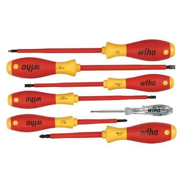Insulated Screwdriver Set, 7 pcsSKU G0233508Categories Hand ToolsDescription Insulated Screwdriver Set, Tip Finish Black Oxide, 1/4 in, 5/32 in, 7/32 in, Phillips, Slotted, Square, Ergonomic, Number of Pieces 7, Yes, ESD Safe No, Non-Sparking No, Measurement Type SAE, Includes 110 to 250V Tester, Corrosion Resistant Yes, ASTM F1505-01, CSA, DIN 7437, IEC EN DIN 60900, NFPA70E, VDE 0682/Part 2012, Tether Ready No, Range of Shank Lengths 80 mm to 150 mmgraingerSKU: 53KG39, mscSKU: 55839468, zoro_no: G0233508, mongo_id: 65bbe98022d7a989a995d689