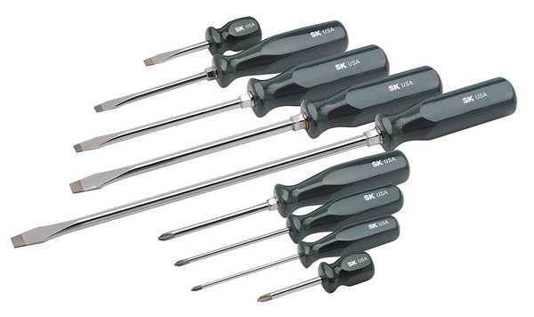 Screwdriver Set, Slotted/Phillips, 9 Pc