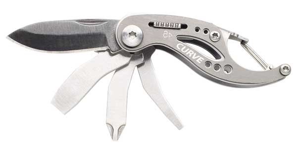 SKU G1689247Categories Hand ToolsDescription Folding Knife, Blade Edge Type Curved, Closed Length 2 1/4 in, Features Fine Edge Blade, Carabineer Clip, Folding Handle Yes, Handle Color Gray, Handle Material Stainless Steel, Includes -, Includes Pocket Clip No, Includes Sheath No, Number of Tools 6, Open Length 2 1/4 in, Opening Mechanism Fold-Out, Primary Tool Knife, Series Curve, Size Family Key Chain Size, Tool Families Included Cross Driver, File, Opener, Tool Material Stainless SteelgraingerSKU: 4RDT3, mscSKU: , zoro_no: G1689247, mongo_id: 65bbe96322d7a989a99500c7