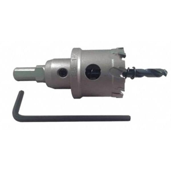 Carbide Hole Cutter, 1-5/8in. Hole, 1in. DSKU G9477054Categories Hand ToolsDescription Hole Cutter, Primary Material Application General Purpose, Materials Cut Aluminum, Pipe, Plastic, PVC/ABS, Sheet Metal, Stainless Steel, Arbor Design Built-In, Tooth Material Carbide Tipped, Saw Dia. 1 5/8 in, Number of Teeth (Hole Cutters Only) 6, Max. Cutting Depth 1 in, Impact Rated Yes, Shank Size 3/8 in, Pilot Drill Size 1/4 in dia X 2 1/2 in LgraingerSKU: 36FV36, mscSKU: , zoro_no: G9477054, mongo_id: 65bbe6ec3aaddbd5a9061f18