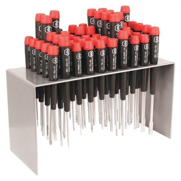 SKU G6031501Categories Hand ToolsDescription General Purpose Screwdriver Set, Tip Finish Chrome, 1.3 mm, 1.5 mm, 1/16 in, 1/32 in, 1/64 in, 1/8 in, 2 mm, 2.5 mm, 3 mm, 3/32 in, 3/64 in, 5/32 in, 5/64 in, 7/64 in, 9/64 in, PL1, PL2, PL3, PL4, T1, T10, T2, T3, T4, T5, T6, T7, T8, T9, Hex, Nut Driver, Pentalobe, Phillips, Slotted, Torx, Ergonomic, Number of Pieces 50, No, ESD Safe No, Non-Sparking No, Measurement Type Metric, SAE, Torx, Includes Metal Stand, Corrosion Resistant Yes, Tether Ready No, Range of Shank Lengths 1 5/8 in to 2 3/8 ingraingerSKU: 440A39, mscSKU: 55839435, zoro_no: G6031501, mongo_id: 65bbe95a22d7a989a994f0be