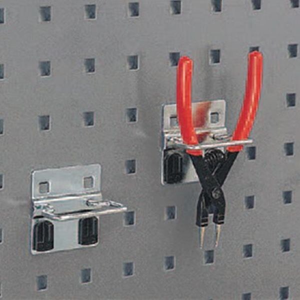 SKU G9209929Categories Hand ToolsDescription Pliers/Wrench Tool Holder, Number of Hooks 10, Overall Height 2 3/8 in, Overall Length 1 1/4 in, Overall Width 2 1/4 in, 1 1/4 in Hook Depth, 1 1/2 in For Pegboard Hole Spacing, For Pegboard Hole Size 3/8 in, For Tool Type Pliers, Wrenches, Surface, Locking Clip Locking System, Square For Pegboard Hole Shape, Steel, Silver, Zinc-Plated, Toolholder Accessory Type, Package Quantity 10graingerSKU: , mscSKU: 00052340, zoro_no: G9209929, mongo_id: 65bbe8c222d7a989a9915115