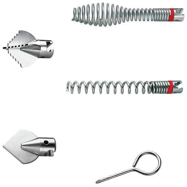 SKU G906599001Categories Hand ToolsDescription Drain Cleaning Set, Product Type Drain Cleaning Tool Set, Compatible Cleaner Series R600, Number of Augers 2, Auger Type Bulb Auger, Straight Auger, Number of Cutters 2, Cutter Type Spade Cutter, 4-Blade Cutter, Number of Cables 0, Maximum Drain Line Inside Diameter 5 7/8 in, Minimum Drain Line Inside Diameter 13/16 in, Application Drain Cleaners, Janitorial, Plumbing, Cable Material Steel, Connection Size 5/8 in, Coupling Type T-SlotgraingerSKU: , mscSKU: , zoro_no: G906599001, mongo_id: 65bbe84d9a749db822785892
