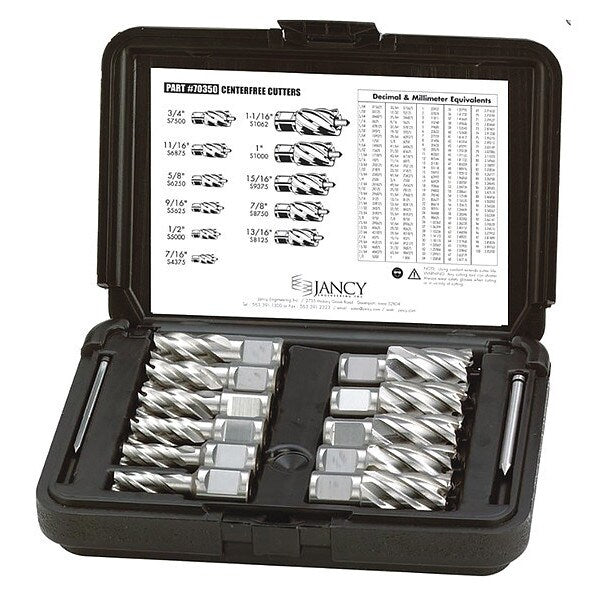 Annular Cutter Kit, 2" Cut Depth, 6pcs.SKU G6638935Categories Hand ToolsDescription Annular Cutter Set, Number of Cutters 5, High Speed Steel, TiN, Weldon Flat, Shank Diameter 3/4 in, Shank Hex Size 3/4 ingraingerSKU: 53DP13, mscSKU: , zoro_no: G6638935, mongo_id: 65bbe8729a749db822791bed