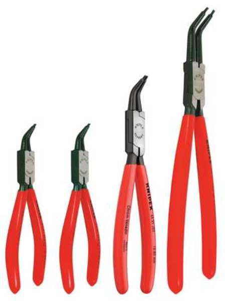 SKU G4782705Categories Hand ToolsDescription Retaining Ring Plier Set, For Ring Type Internal, Plier Types Retaining Ring Pliers, Overall Length 5 3/4 in, 8 in, 9 in, Tip Diameter 0.049 in, Tip Angle 45 Degrees , Jaw Opening Type Manual, Number of Pliers 4, Features Help Install and Remove Internal and External Retaining Rings, For Bore Diameter 1/4 in to 2 1/4 in, Handle Color RedgraingerSKU: 10U091, mscSKU: , zoro_no: G4782705, mongo_id: 65bbe8339a749db82277c271