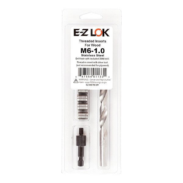 SKU G809228343Categories Hand ToolsDescription Knife Thread Insert, System of Measurement Metric, Insert Diameter 9.525 mm, Overall Length 12.7 mm, Internal Thread Size M6-1.00, Thread Direction Right Hand, Thread Type Coarse, Material Stainless Steel, Material Grade/Class 18-8, Finish Plain, Drive Type Slotted, Drill Bit Size 25/64 in, Compatible Material Wood, Minimum Material Thickness 14 29/32 mm, Maximum Hole Diameter 9.931 mm, Compatible with Manufacturer Model Number DT-M6, Includes (6) Threaded Inserts, Drill, Drive Tool$39.02 / eachWeb priceThread Repair Kit, Knife Thread Inserts, Plain 18-8 Stainless Steel, 6 InsertsSKU G809228343Categories Hand ToolsDescription Knife Thread Insert, System of Measurement Metric, Insert Diameter 9.525 mm, Overall Length 12.7 mm, Internal Thread Size M6-1.00, Thread Direction Right Hand, Thread Type Coarse, Material Stainless Steel, Material Grade/Class 18-8, Finish Plain, Drive Type Slotted, Drill Bit Size 25/64 in, Compatible Material Wood, Minimum Material Thickness 14 29/32 mm, Maximum Hole Diameter 9.931 mm, Compatible with Manufacturer Model Number DT-M6, Includes (6) Threaded Inserts, Drill, Drive Tool$39.02 / eachWeb price -